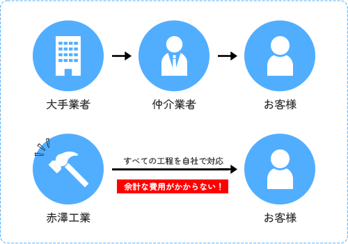 完全自社施工だからこそ余計な費用がかからず、適正価格でしっかりとした工事をご提供できます。